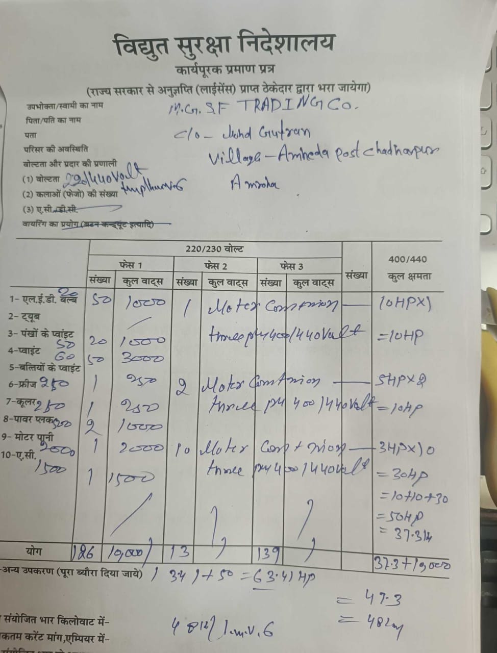 (Following Information furnished by Applicants Requesting Electric Supply more than 50 KW and for Industrial Purposes )