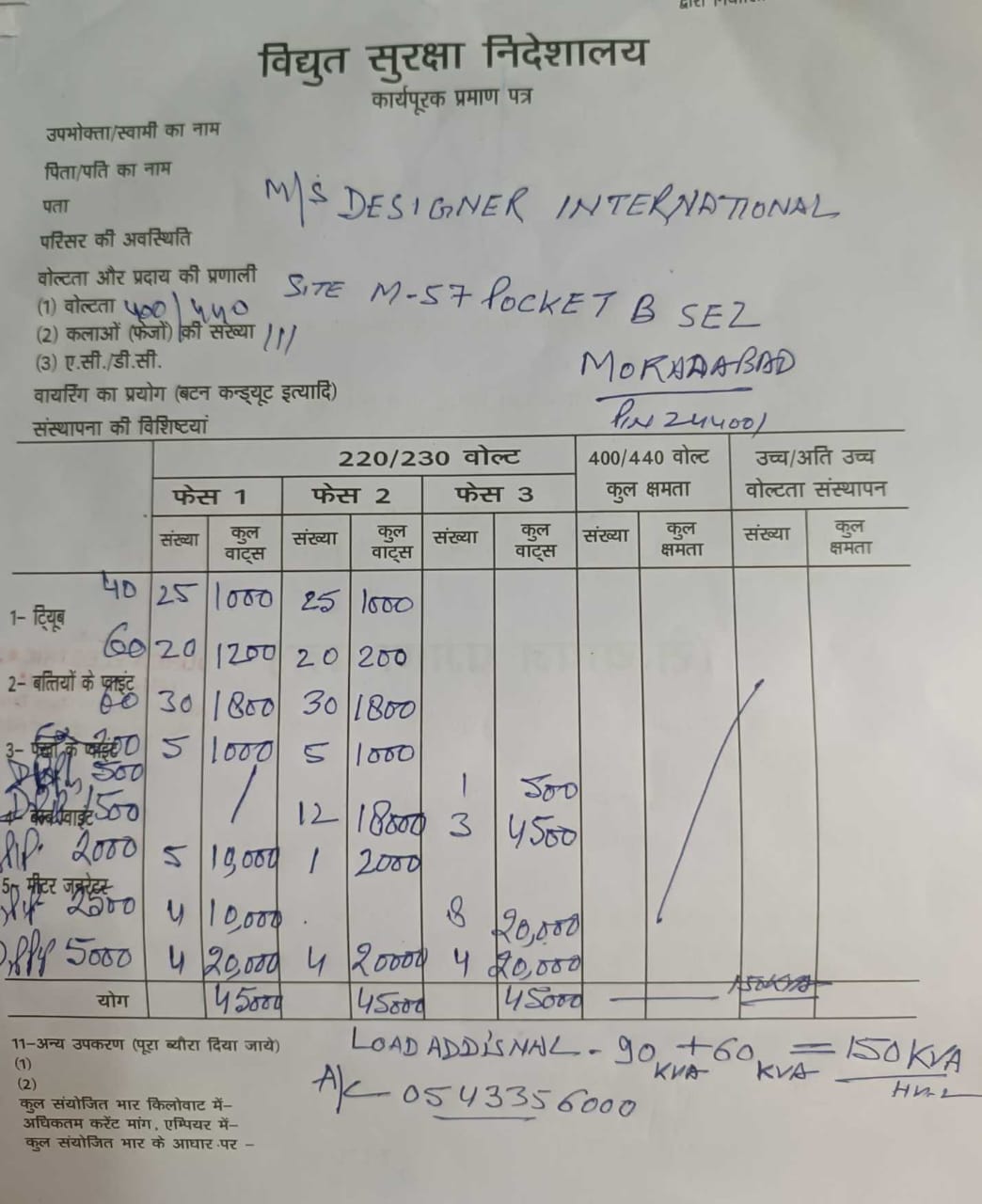 Additional Load KVA